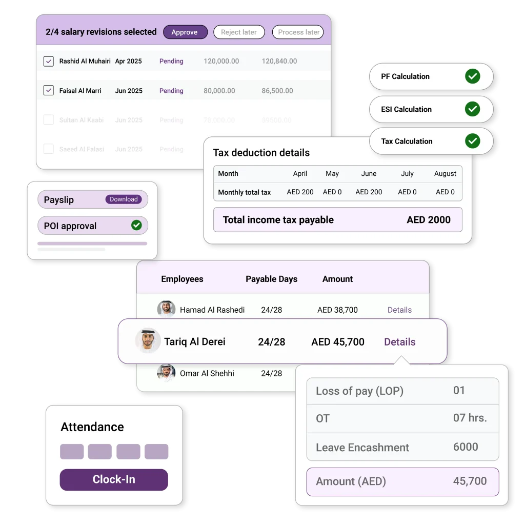 Automated salary calculations, tax compliance, and payslip generation